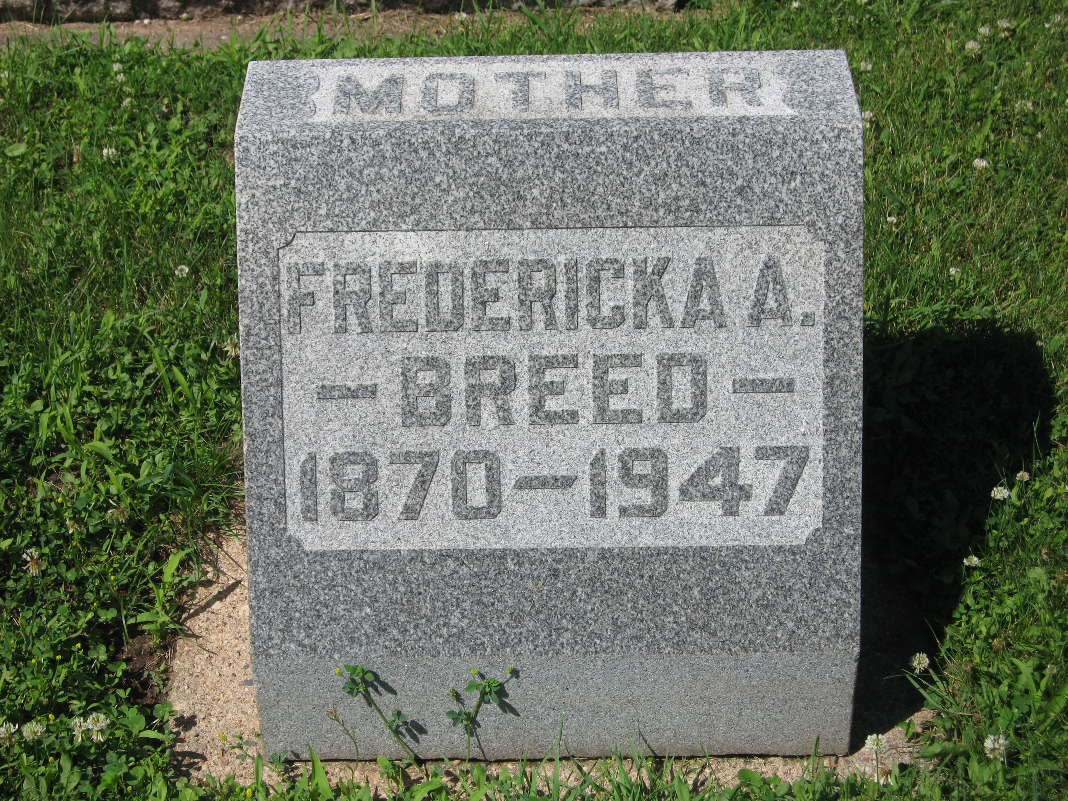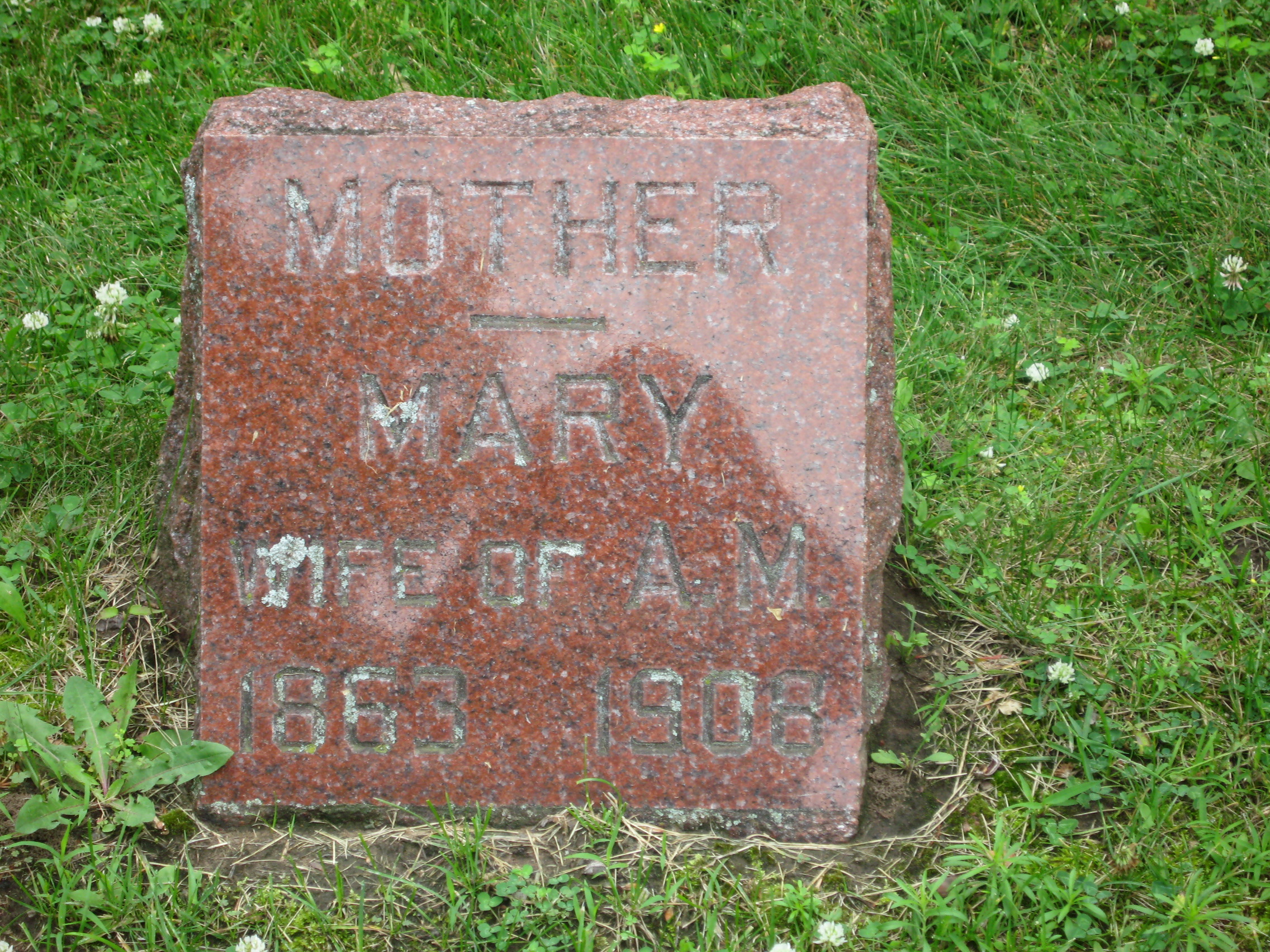 Gravestone for Mary Eberlein Crone, Woodlawn Cemetery, Shawano, Wisconsin. Photograph taken by Kristen James Eberlein, July 2010.
