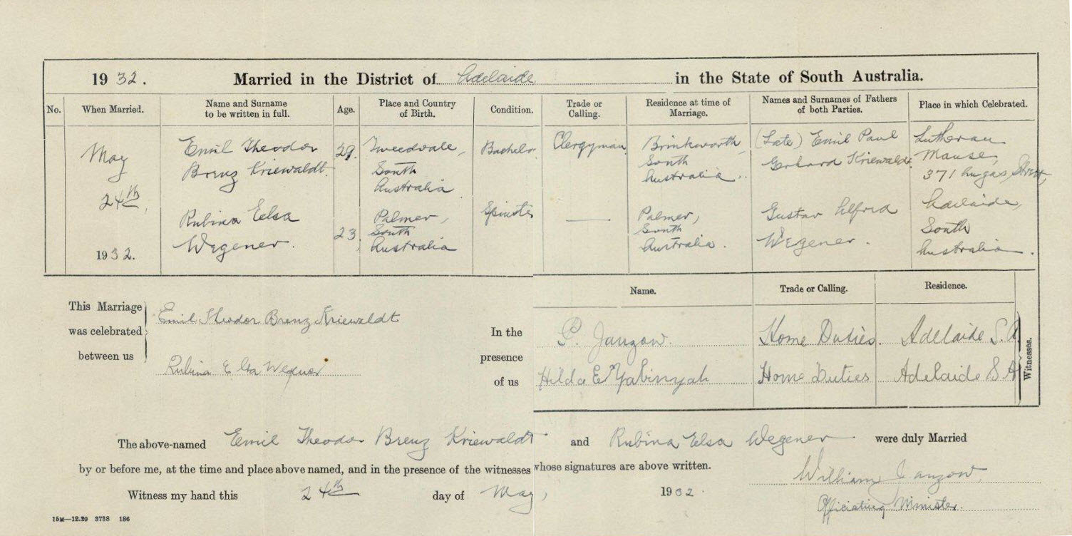 Note that his name is listed as “Rudolph Martin Chemnitz Kriewaldt.” Perhaps the name Rudolph never took — certainly his mother always called him Martin in her diaries — or he dropped the Rudolph because of anti-German sentiment during World War I.