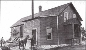 John Kriewaldt with one of his 22 horse [sic] outside the family cheese factory in 1911.